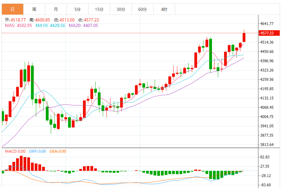 周一(1月12日),现货黄金目前位于4582.77美元/盎司附近,涨幅为1.63%。