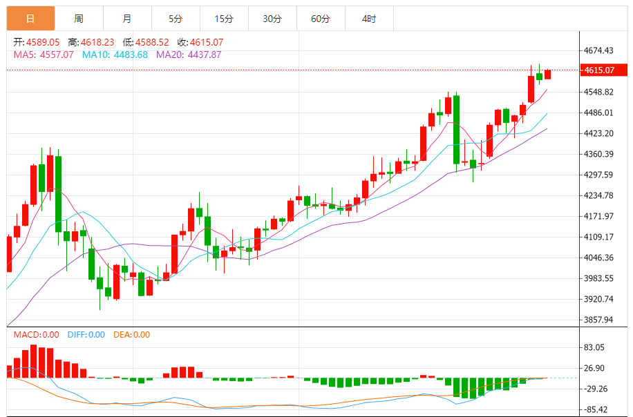 周三(1月14日),现货黄金目前位于4614.85美元/盎司附近,涨幅为0.62%。
