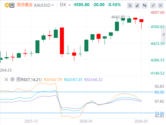 下行方面,即刻支撑位在周线低点4274美元(12月31日),该区域与55日简单移动均线(SMA)4259美元形成双重支撑。更下方支撑依次为12月低点4163美元(12月2日)及100日SMA的4071美元。