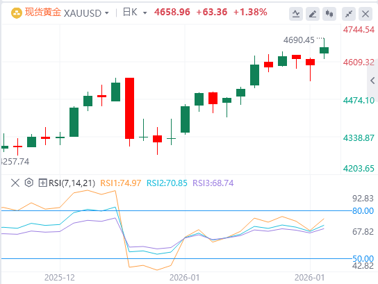 黄金在周一亚洲早盘上涨至约4675美元附近的新历史高点。截至目前,黄金报价4689.96。