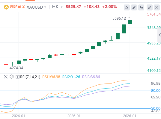 另一方面,在年增长超过80%后,近期内黄金实现盈利了结也不可排除。IG市场分析师Tony Sycamore表示:“这些涨幅主要来自持续的央行买入、趋势跟踪基金的持续动能以及强劲的优质需求。“尽管这波抛物线形态表明回调不远,但基础面预计将在2026年持续支撑,使任何下跌成为有吸引力的买入机会。”