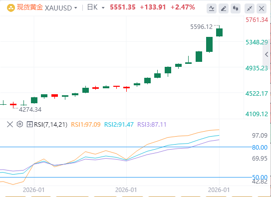 这,加上美元新一轮抛售,帮助避险黄金持续了创纪录的反弹,连续第九天,并在周四亚洲时段攀升至5600美元附近。