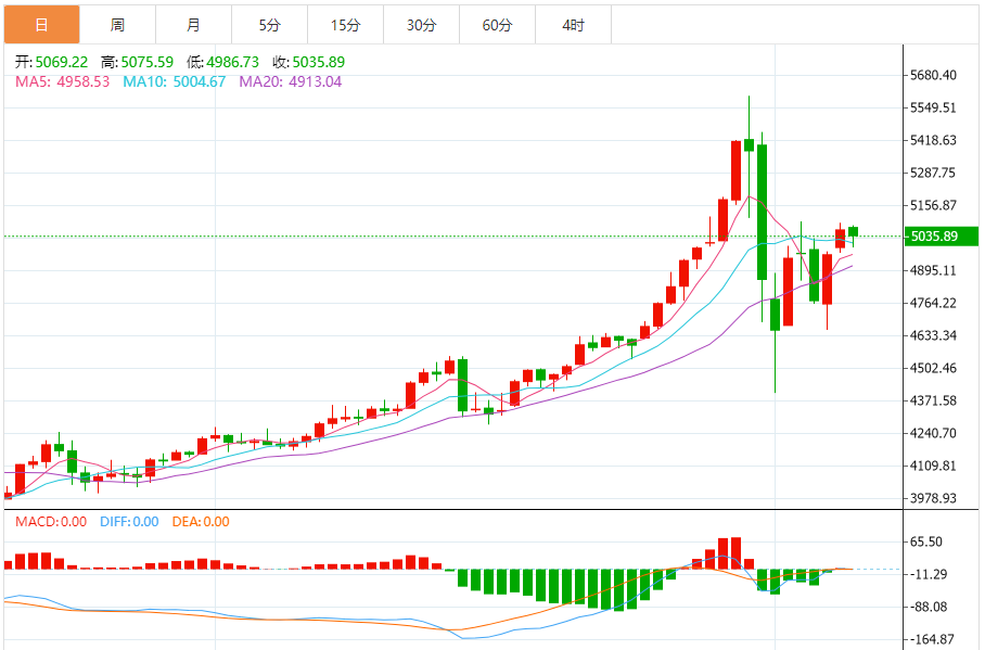 周二(2月10日),现货黄金目前位于5035.60美元/盎司附近,跌幅为0.47%。