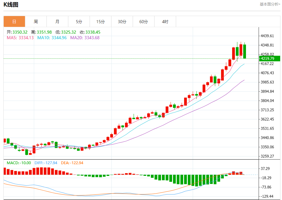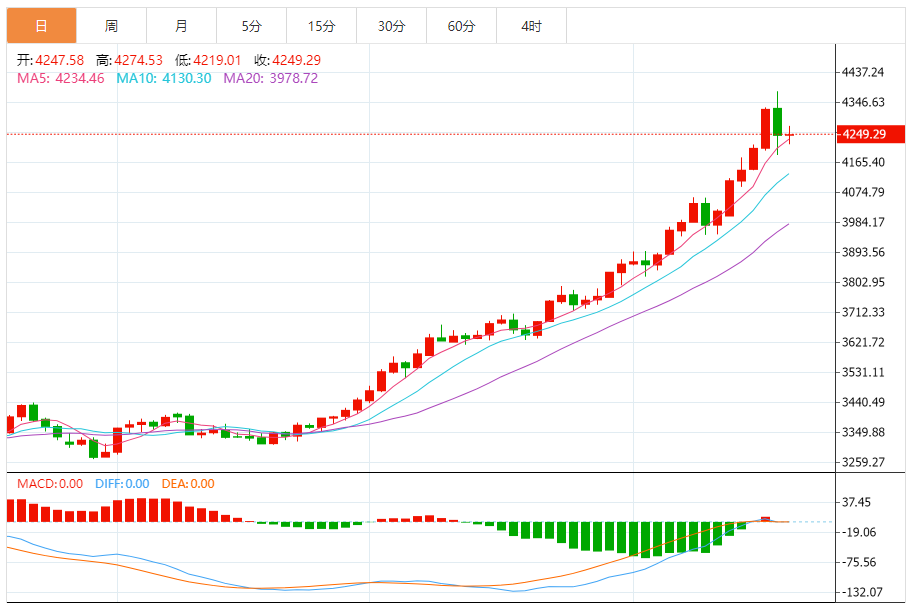 10月20日,周一亚洲早盘,金价交投于4243美元附近的负值区域。贵金属小幅走低,因为近期破纪录的反弹似乎过度紧张,节日高峰过后实物需求有所缓解。交易员准备迎接周一晚些时候公布的中国第三季度国内生产总值(GD)数据,以及9月份工业生产和零售销售报告。 在印度节日需求和强劲的TF购买的提振下,黄金上周收盘上涨。