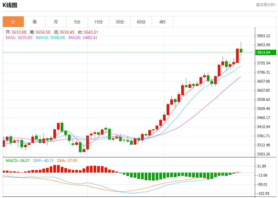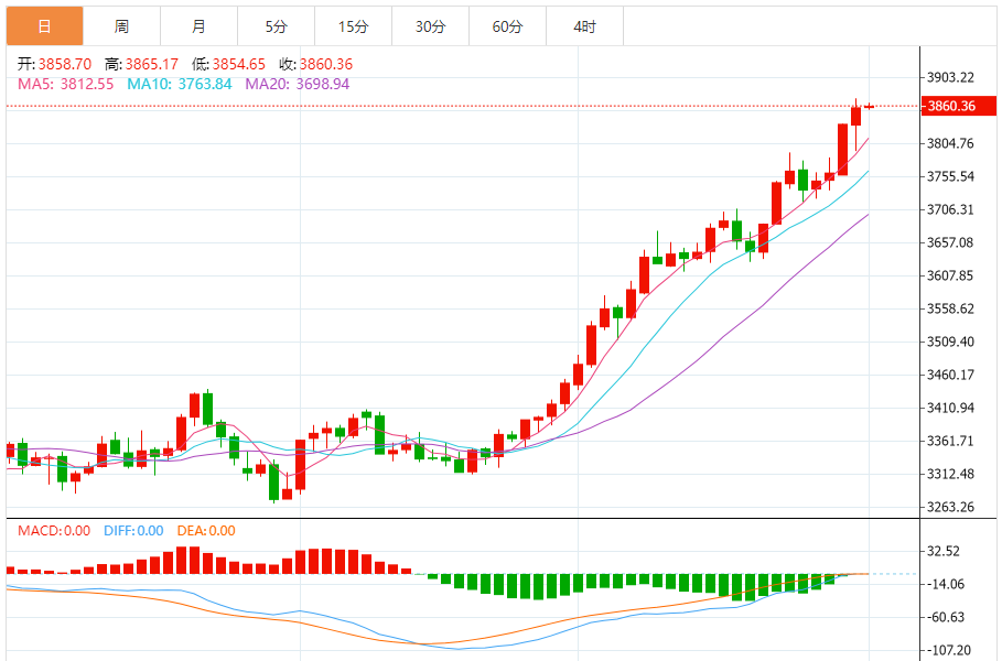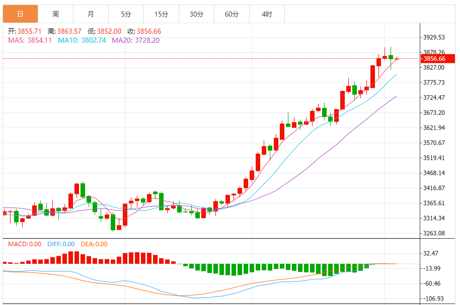 截至2025年10月1日19时23分,不同市场的黄金价格呈现上涨态势。国际黄金期货(纽约金)价格为3918.2美元/盎司,涨幅1.16%。国际黄金现货(伦敦金现)价格为3889.18美元/盎司,涨幅0.69%。上海黄金现货(黄金T+D)价格为871.5元/克,涨幅1.68%。以下是对10月1日黄金走势关键点位的解析: 日线级别关键点位:从日线