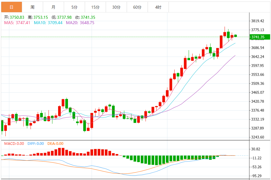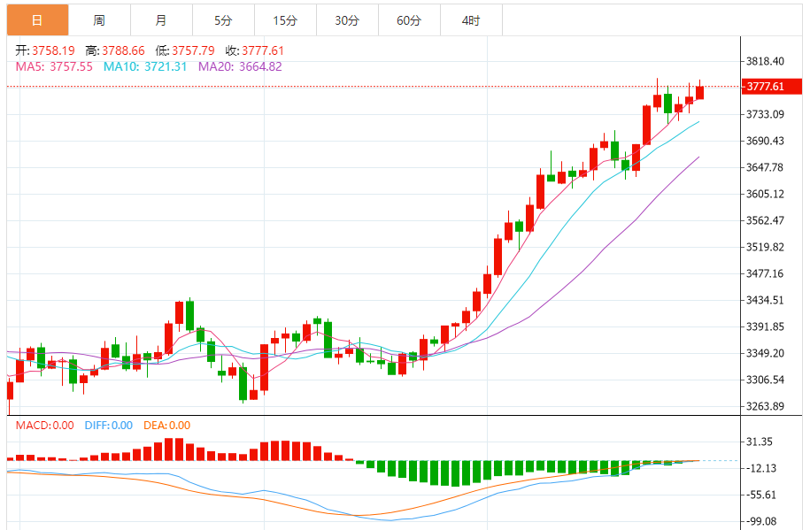 金价突破3760美元关口,并向近期3791美元的历史高点(ATH)逼近。美国新关税政策及地缘政治紧张局势,持续支撑市场对黄金这一避险资产的需求。现货黄金盘中在3780美元附近整理,徘徊于本周早些时候创下的3791美元历史高点下方。受贸易紧张局势再起及地缘政治风险推动,避险需求对金价形成支撑,目前金价有望实现连续第六