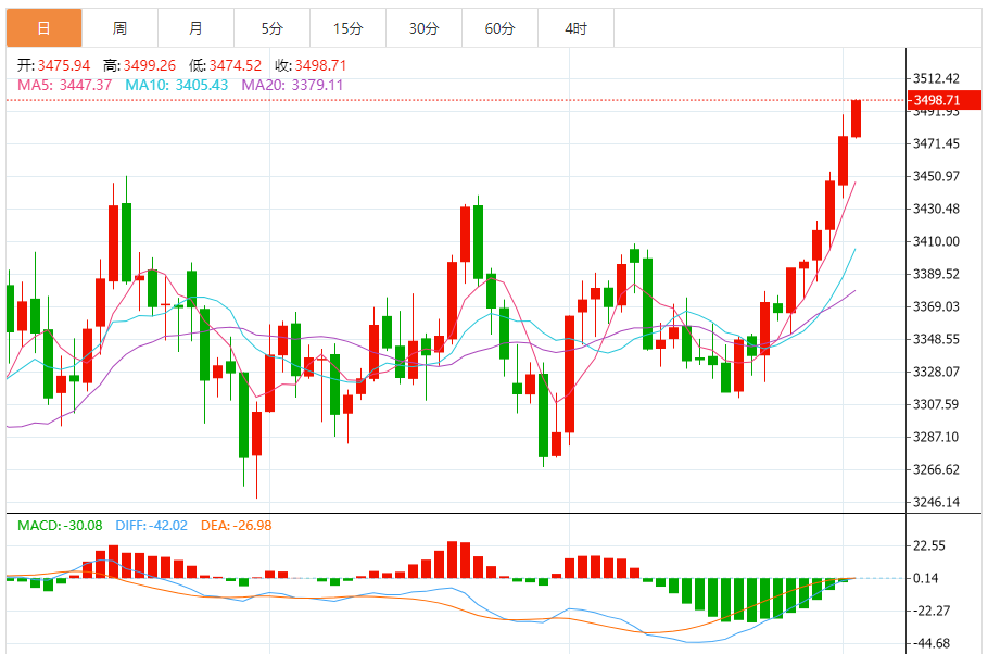 周二亚盘,黄金在周二的亚洲交易时段延续上涨趋势,连续第六天触及新的历史高点,突破3500美元的心理关口。市场对美联储(Fd)本月将降息的日益接受成为推动资金流向无收益的黄金的重要因素。此外,美国关税的不确定性和升级的地缘政治紧张局势也是支撑避险金属的其他因素。上述支撑因素在很大程度上抵消了美元(UD)的
