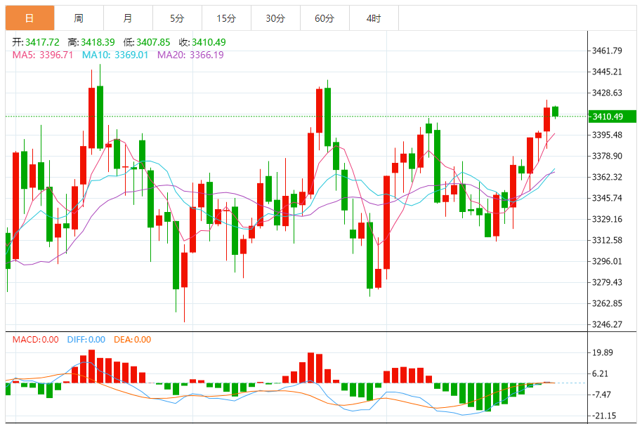 周四盘中,现货黄金报3398.48,涨幅0.04%。 今日分析:在3385.00之上,看涨,目标价位为3405.00,然后为3415.00。 技术点评:随后的阻力位是3405.00,然后为3415.00。 支撑位:3385.003380.003374.00 阻力位:3435.003415.003405.00 (亚汇网编辑:冰凡)
