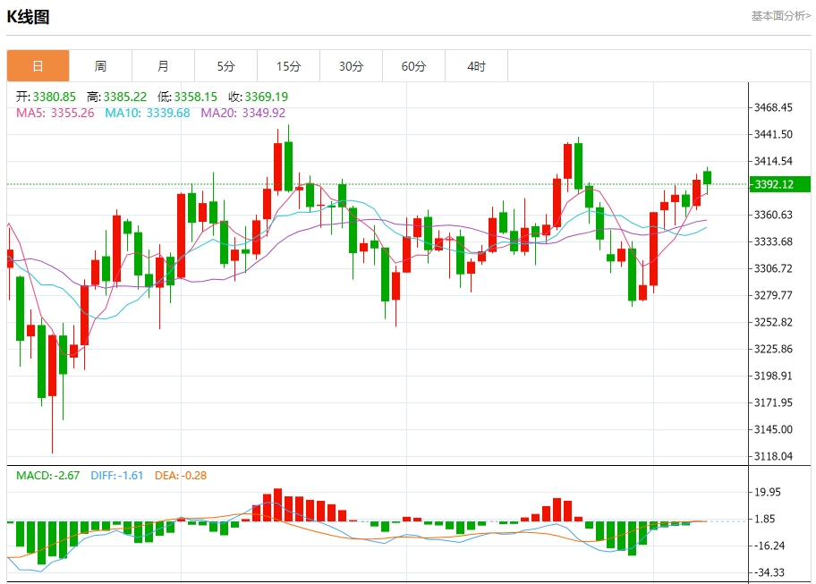 周五(8月8日),现货黄金目前位于3384.18美元/盎司附近,跌幅为0.34%。 黄金市场基本面分析 周四(8月7日)美市盘中,现货黄金窄幅震荡上涨。现货黄金价格在周三下跌0.34%,收报每盎司3369.19美元,此前一日曾触及近两周高点3390关口。这一回落主要是投资者在近期上涨后的获利了结行为所致。 黄金