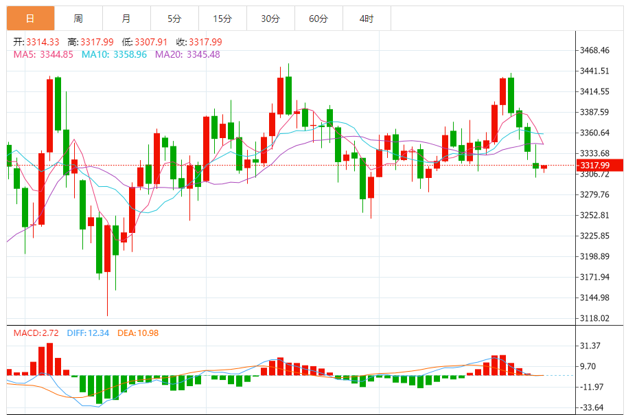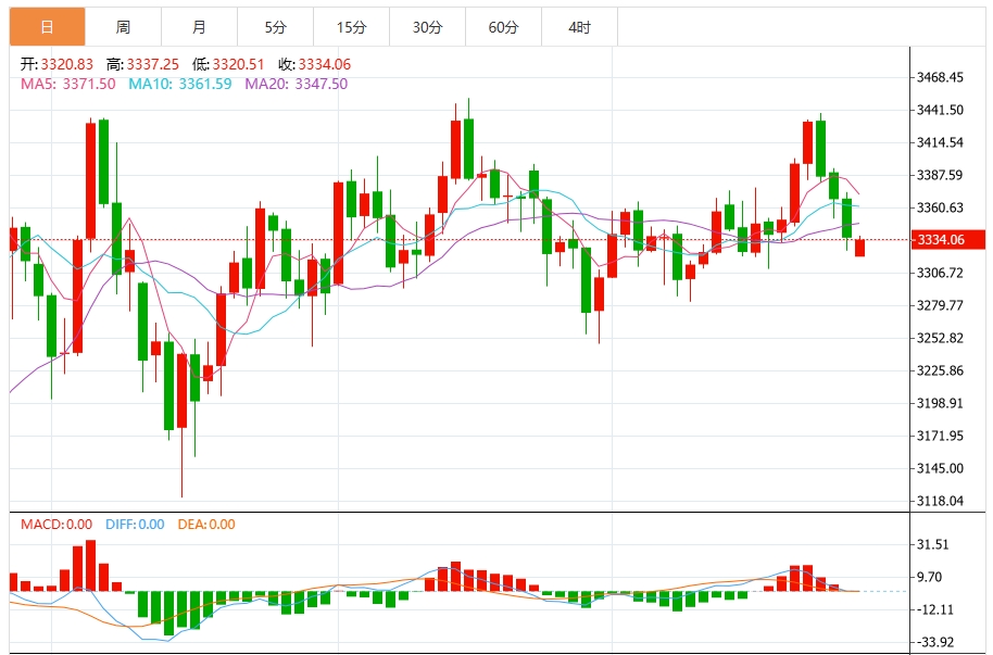 一、技术面关键点位:多空博弈白热化 短期阻力位:3350-3365美元/盎司 4小时图显示,黄金价格受布林带中轨压制明显,当前布林带开口向下扩张,价格沿下轨运行。这一区域是日内空头防守的核心阵地,若金价反弹至3350-3365美元区间,将遭遇密集抛压。具体来看: 3350美元:对应4小时图ACD指标双线负