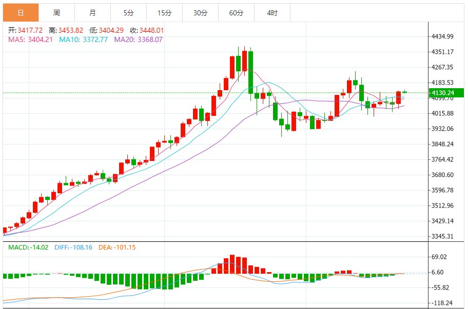 周一盘中,现货黄金报4084.24,涨幅0.46%。 今日分析:在4036之上,看涨,目标价位为4085,然后为4110。 技术点评:RI技术指标呈现继续上升趋势。 支撑位:403640224000 阻力位:413041104085 (亚汇网编辑:冰凡)