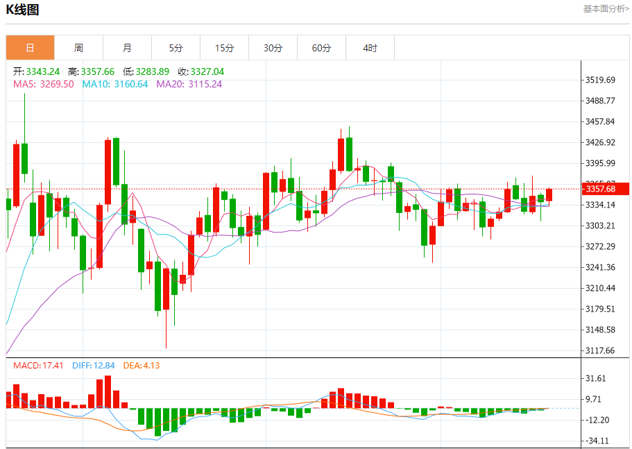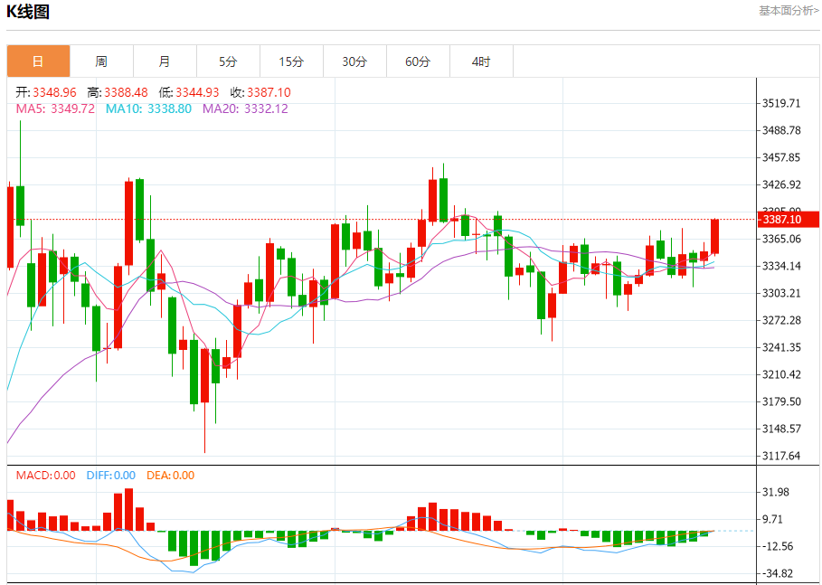 一、实时价格与技术面关键点位 根据实时数据,2025年7月18日国际黄金市场呈现震荡上行态势。截至17:59,伦敦金现报3352.37美元/盎司,较开盘上涨0.37%,最高触及3354.84美元,最低下探3330.4美元。纽约金期货价格为3359.5美元/盎司,涨幅0.42%,日内波动区间为3337.2-3361美元。 从技术分析角度,关键支撑
