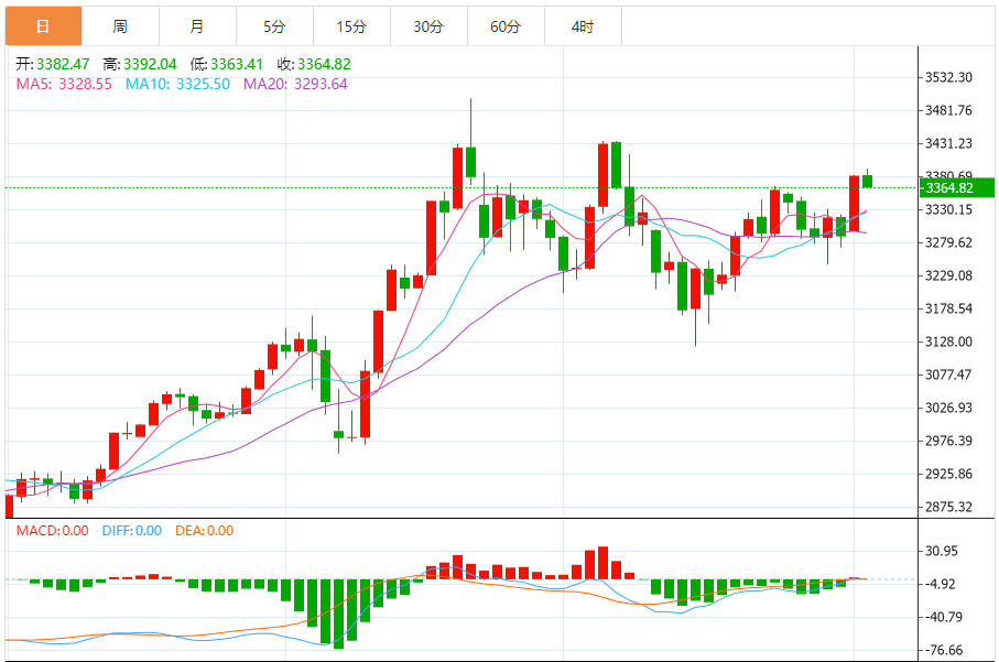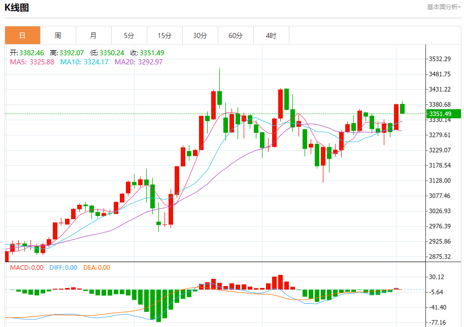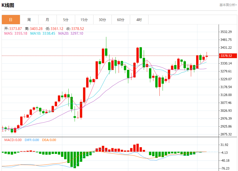 一、实时行情与关键点位 价格动态:截至发稿,国际黄金价格报3378.50美元/盎司,日内涨幅0.43%,延续昨日突破3380美元后的震荡上行趋势。周一金价跳空高开后飙升至3392美元(6月2日高点),日线以光头阳线收于3381.68美元,形成“突破性上涨”形态,显示多头力量强劲。 关键支撑/阻力位: 支撑位: