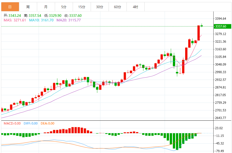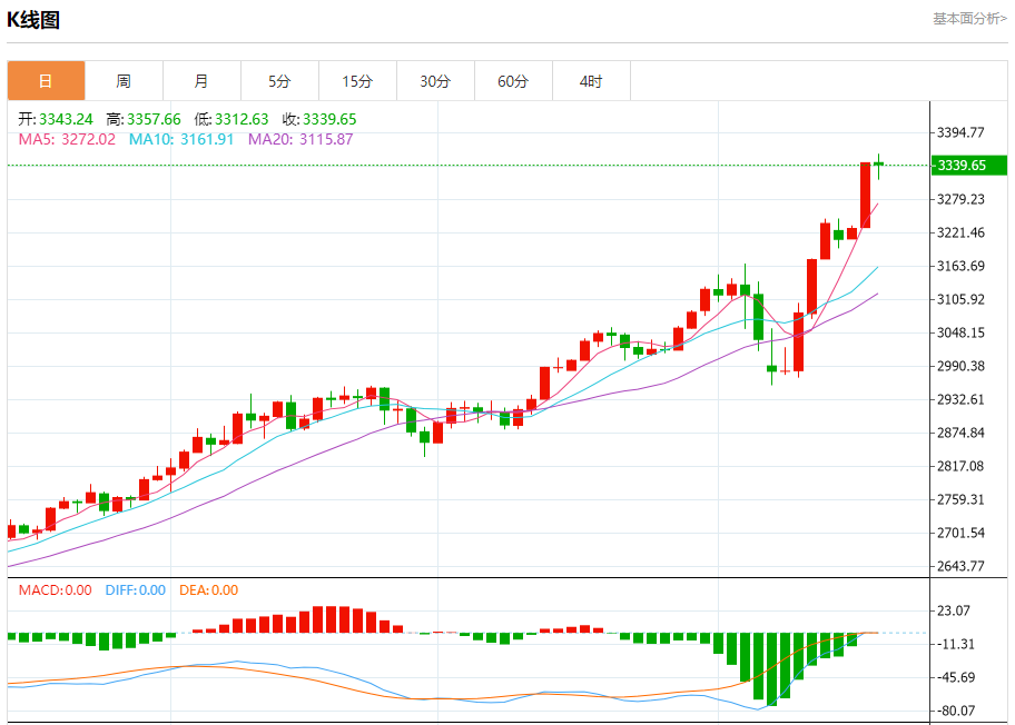周四(4月17日)亚盘,现货黄金小幅冲高,一度刷新历史高点至3357.66美元/盎司附近。金价周三大涨逾100美元,升破3300关口,最高触及3342.95美元/盎司,涨幅约3.52%,国际贸易紧张局势升级,促使投资者转向避险资产,美联储主席承认经济增长放缓,美股、美元和美债收益率大跌,也给金价提供上涨动能。本交易日将迎来欧洲