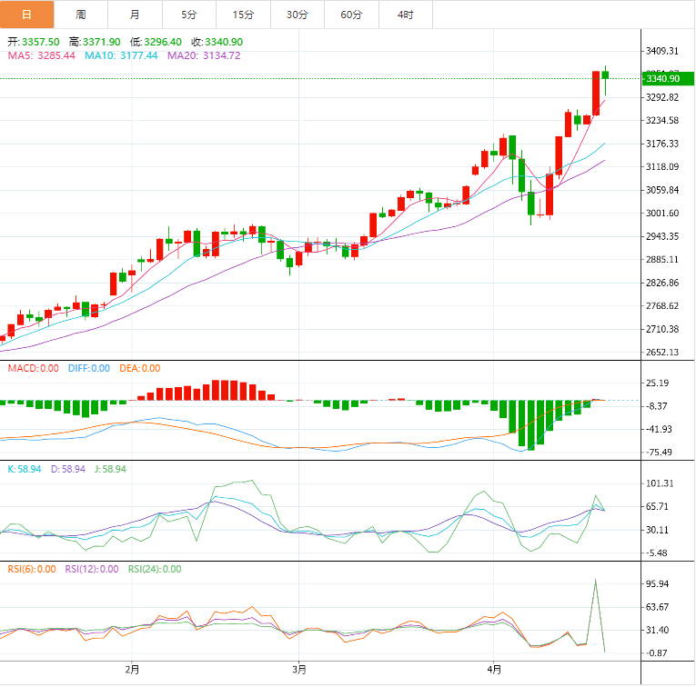 在全球经济局势因美国一系列关税政策而风云变幻之际,黄金市场作为经济“晴雨表”与避险资产的代表,其价格走势备受瞩目。今日,黄金价格延续近期强劲涨势,再度吸引了全球投资者的目光。在此背景下,为投资者带来2025年4月21日晚间黄金价格的详细交易提醒。 一、今日黄金技术分析 (一)日内价格走势回顾