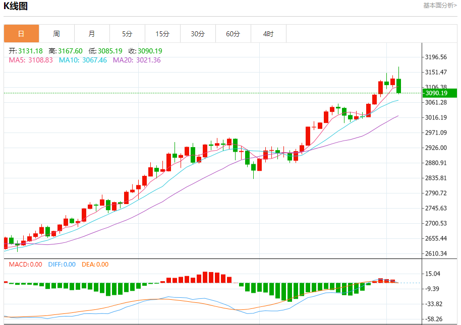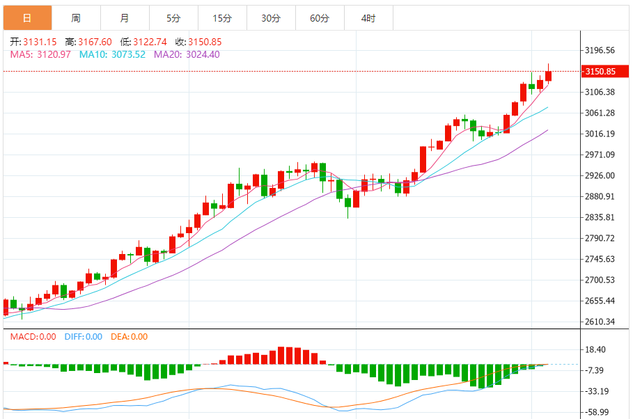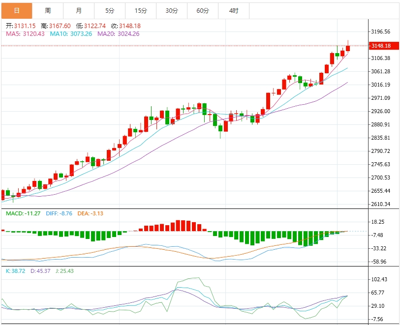 周四(4月3日)亚盘,现货黄金延续涨势,徘徊于3148.75附近,因特朗普美国总统特朗普周三表示,他将对所有进口到美国的商品征收10%的基准关税,并对一些美国最大贸易伙伴征收更高的关税,此举将导致他重返白宫后打响的贸易战愈演愈烈,市场避险情绪急剧升温。周三金价上涨0.58%,收报3132.04美元/盎司。本交易日还将出炉