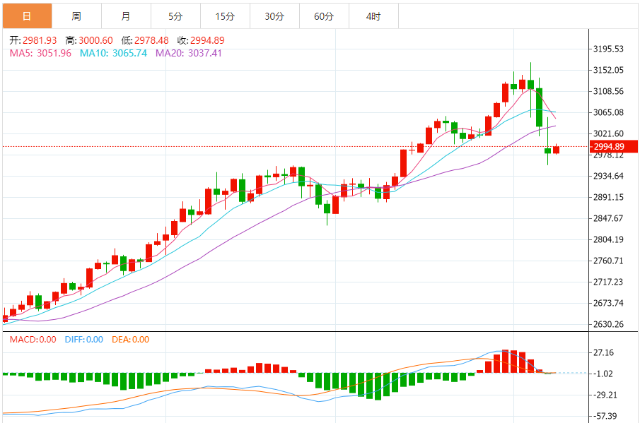周一(4月7日)亚市早盘,现货黄金延续跌势,一度失守3000整数关口,刷新3月13日以来低点至2976.97美元/盎司,因国际贸易担忧情绪升温,美国股指期货继续大跌,日本、澳大利亚和新西兰股市也跟随跌势,投资者继续抛售黄金以弥补他们在更广泛的市场崩溃中的损失。上周五欧美股市大跌,投资者当时已经抛售黄金,导致现货黄