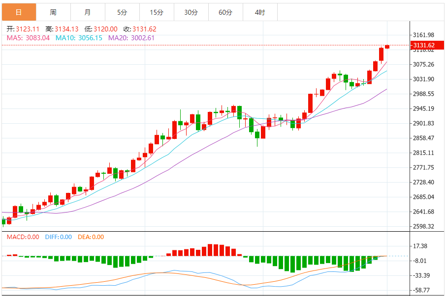 周一盘中,现货黄金报3125.62,涨幅1.34%。 今日分析:在3105.00之上,看涨,目标价位为3135.00,然后为3150.00。 技术点评:RI技术指标呈现继续上升趋势。 支撑位:3105.003090.003077.00 阻力位:3170.003150.003135.00 (亚汇网编辑:冰凡)