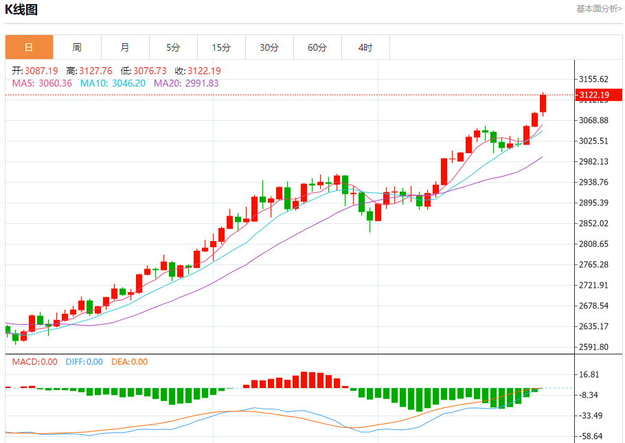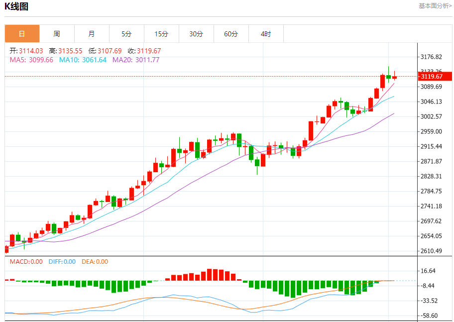 周二盘中,现货黄金报3133.27,涨幅0.30%。 今日分析:在3120.00之上,看涨,目标价位为3150.00,然后为3170.00。 技术点评:在3120.00之上,为多头信号,向上的目标位为3150.00。 支撑位:3120.003105.003090.00 阻力位:3190.003170.003150.00 (亚汇网编辑:冰凡)