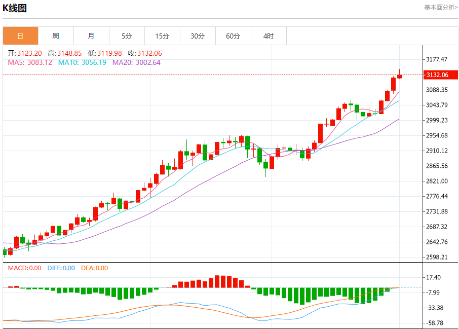 黄金四周连涨、再创历史新高,现货金价盘中突破3086美元/盎司,刷新年内第18个历史新高。COX黄金期货涨0.91%,报3088.90美元/盎司,本周累涨近2%。COX黄金期货6月合约涨0.59%,报3116.60美元,继续创盘中历史新高,本周累涨2.26%。现货黄金尾盘涨0.88%,报3084.25美元/盎司,北京时间22:00左右曾涨至3086.82美元创历史新