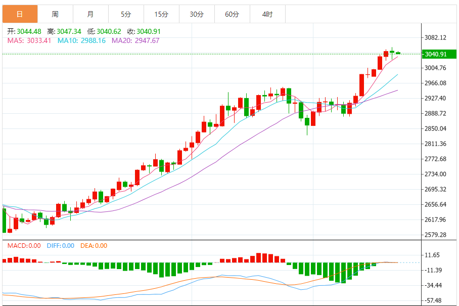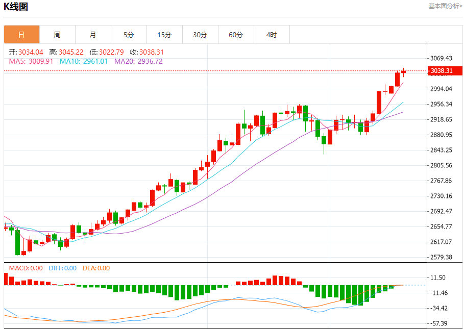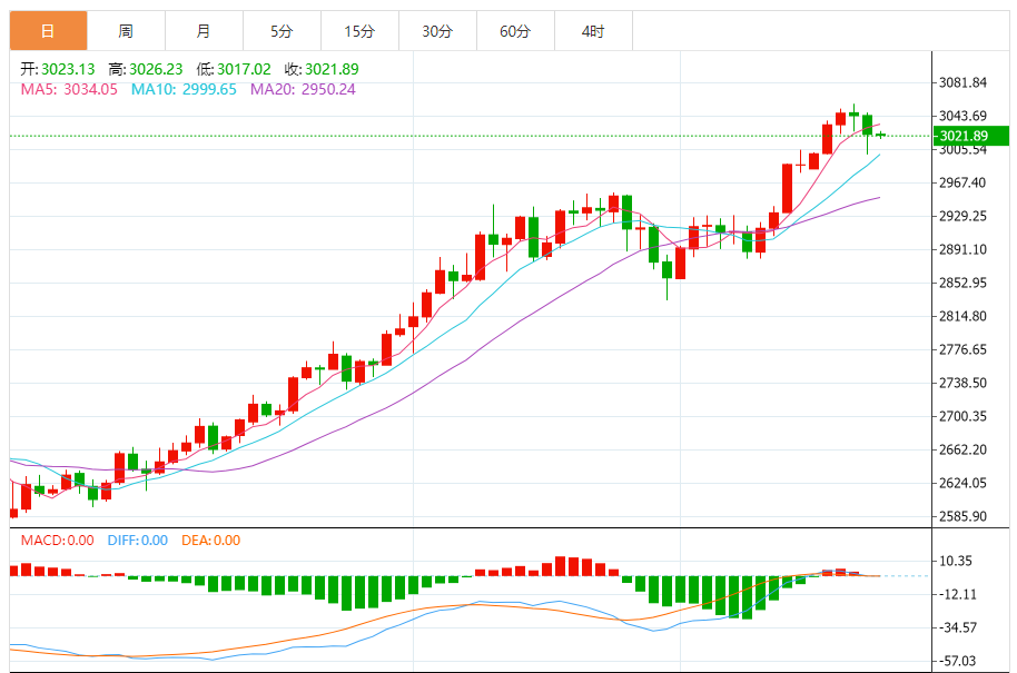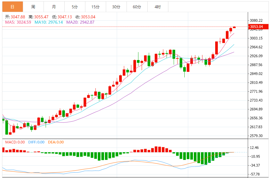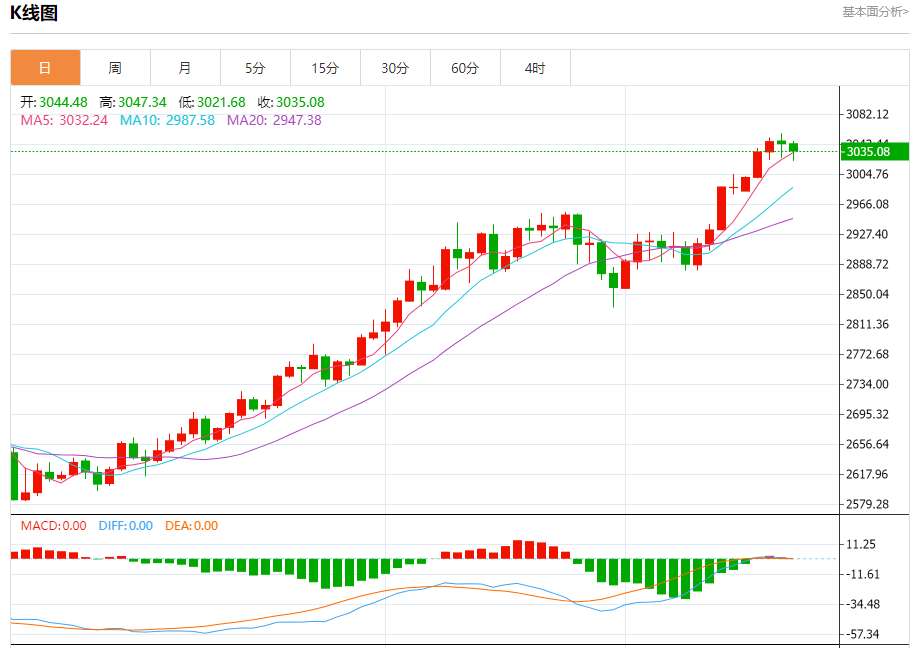周四(3月20日)亚盘,现货黄金窄幅震荡,目前交投于3052美元/盎司附近。隔夜金价在美联储主席鲍威尔发表讲话后继续冲高,现货黄金一度突破3050美元/盎司大关,创下历史纪录。美联储在最新政策会议上宣布维持利率不变,并暗示今年可能降息两次,同时放缓缩减资产负债表的步伐。这一系列举措引发了美元回吐涨幅、美债收益