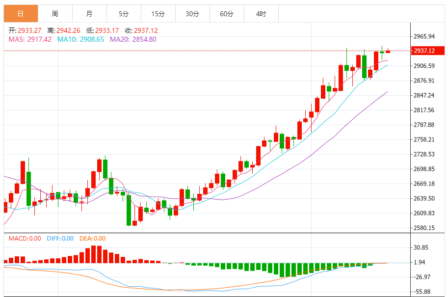 昨日,现货黄金价格面临暂时的负面压力,接近图表上显示的小型看涨通道的支撑线。 今日黄金价格技术分析: 日线级别均线偏离值进一步扩大,但历史新高之后形成新的上涨中枢,唯一需要注意的是ACD指标高位是否存在背离的可能性,从而导致金价调整。日线级别回踩2920美元不破,则有望继续走强,日内压力2980美元