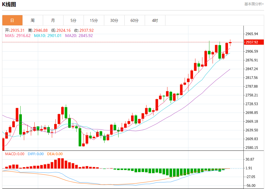 尽管美俄举行了会谈,且以色列与哈马斯之间可能达成第二阶段协议,但地缘政治紧张局势仍在支撑金价。 今日黄金价格技术分析: 黄金周一未能延续破底,价格下探守住10均线支撑反弹,经过周一的整理后周二黄金借助10日均线继续走高,最高价格触及2937一线,日线级别两连阳,此前跌幅被尽数收复,日线结