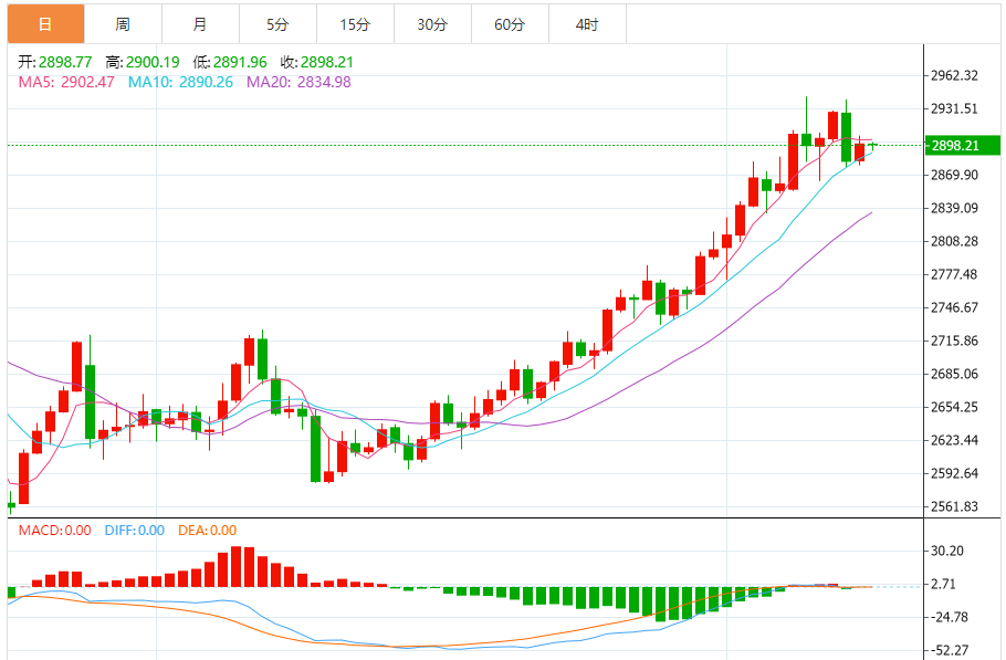 2月18日,周二亚市盘中,黄金交投于2899.86附近。 金价周一在北美时段攀升,在美国(U)市场因总统日休市而关闭,交易清淡的情况下上涨0.56%。黄金在触及2898美元的日低点后收于2878美元。 上周五,黄金录得自12月18日以来的最大跌幅,但在地缘政治不确定性和美国旨在缩小赤字的贸易政策下,黄金的前景看起来很有希望