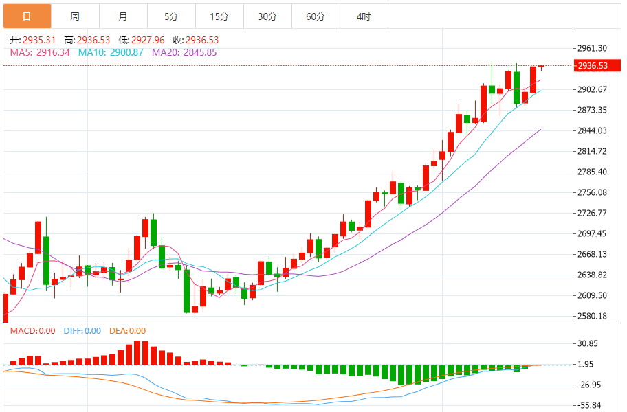 2月19日,周三亚市盘中,黄金交投于2931.19附近。 由于美国总统唐纳德·特朗普提出的有争议的贸易政策存在不确定性,避险需求,黄金价格周二飙升逾1%。上周美国特朗普对钢铁和铝进口征收关税并计划征收互惠关税后,金融市场仍然动荡不安。因此,金价在2月11日触及2942美元后仍有望挑战历史高点。 高盛在年底前将黄金价