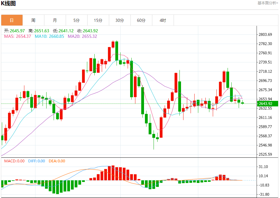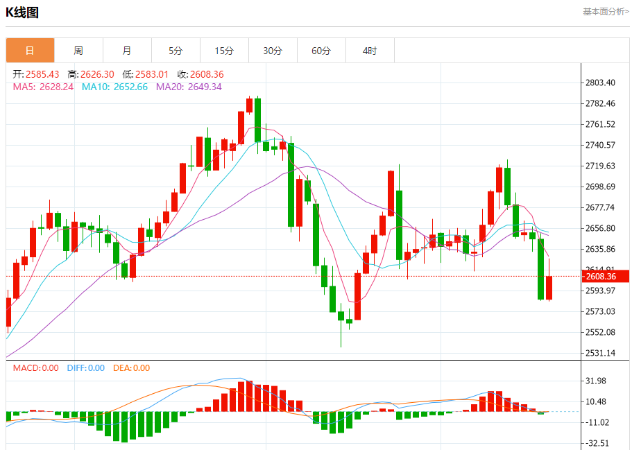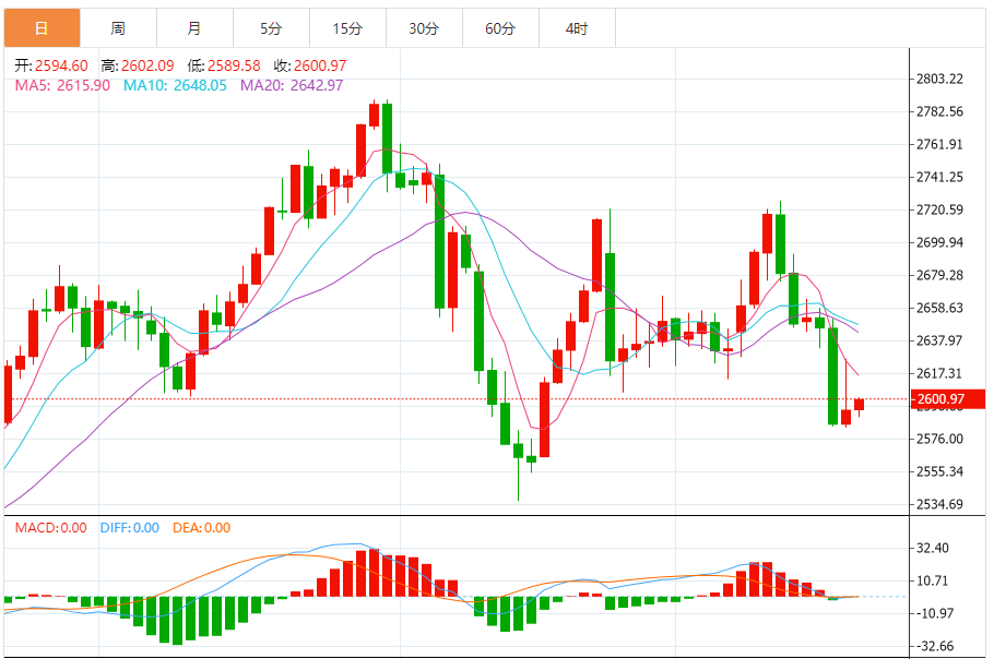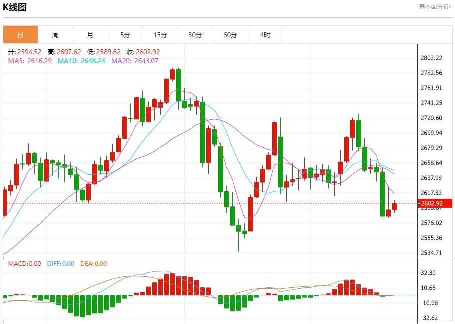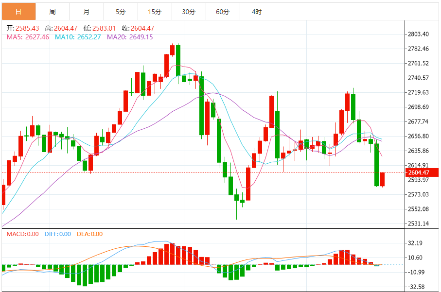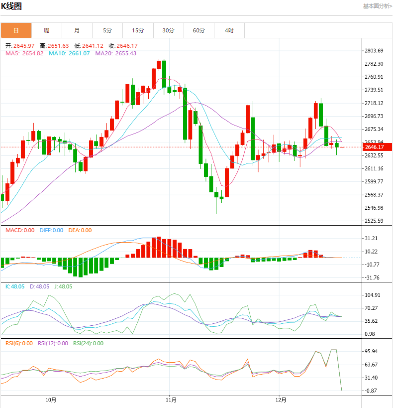 周四(12月19日),现货黄金目前位于2604.54美元/盎司附近,涨幅为0.74%。黄金技术走势呈现出区间震荡的特点,多空双方力量相对均衡,市场缺乏明确的趋势性行情。在基本面方面,市场正在关注美联储的货币政策走向、全球经济形势以及地缘政治局势等因素。投资者应密切关注这些因素的变化,并结合技术分析,灵活调整投资策