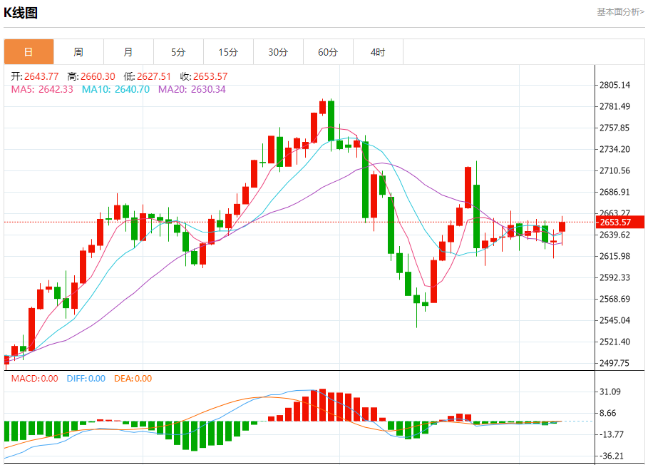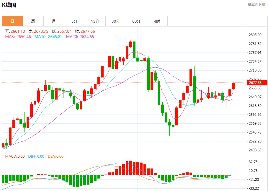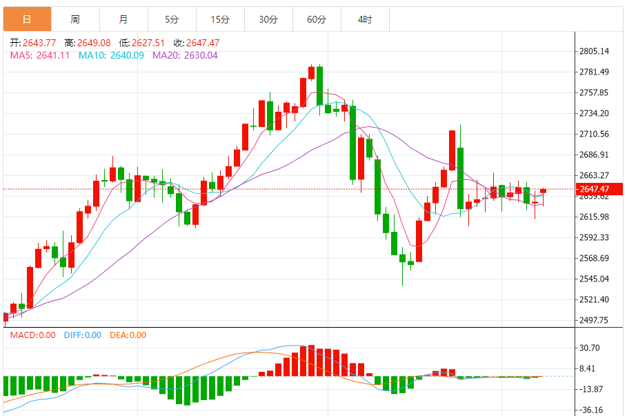 本周现货黄金开盘报2648.65美元每盎司,周一早间迅速下滑至2623美元的低点,这一水平一直保持到周四晚间。随后亚洲和欧洲交易时段成功抹平了黄金的跌幅,现货金一度触及2650美元每盎司。然而,这一高点未能持久,黄金价格在2635美元每盎司附近多次反弹。周四早盘,黄金再次尝试突破未果后,价格从2653美元跌至2625美元,