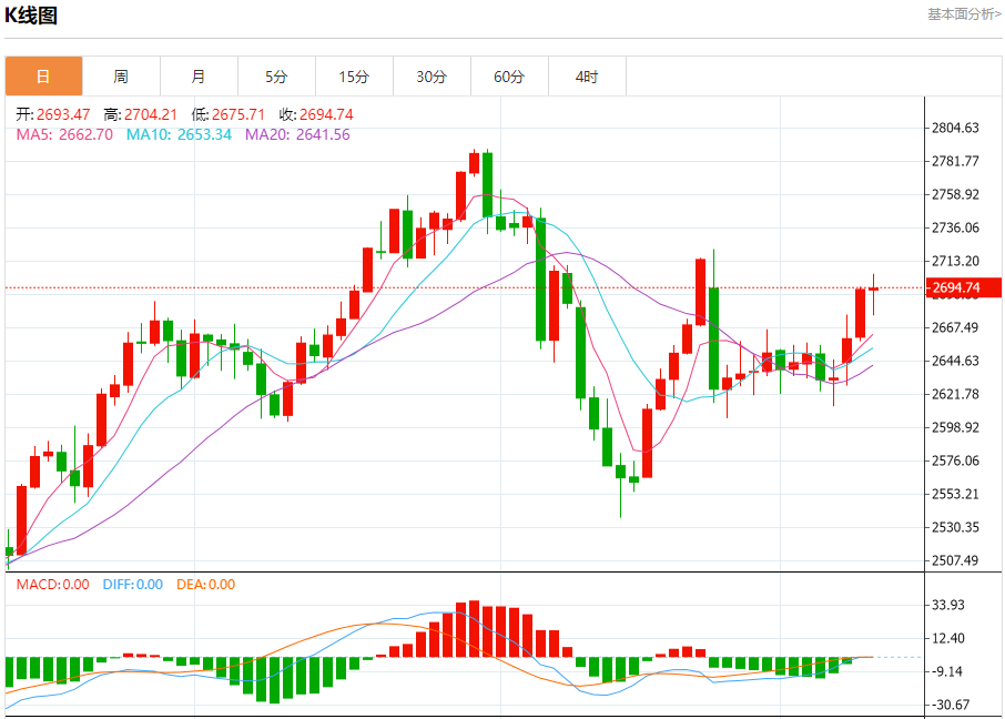 黄金走势主要点位解析 周三,1小时黄金波动轨指标关键点位2675、2683、2705、2712。黄金波动轨主要用在震荡行情,运用波动轨中轨(红色线)判断是趋势还是震荡行情,中轨稍稍朝上,先看做震荡偏多行情。在震荡行情当中,则主要考虑行情运行到波动轨轨道附近的博弈反转机会。关注1.5倍波动轨下轨2683或者2.5倍波动
