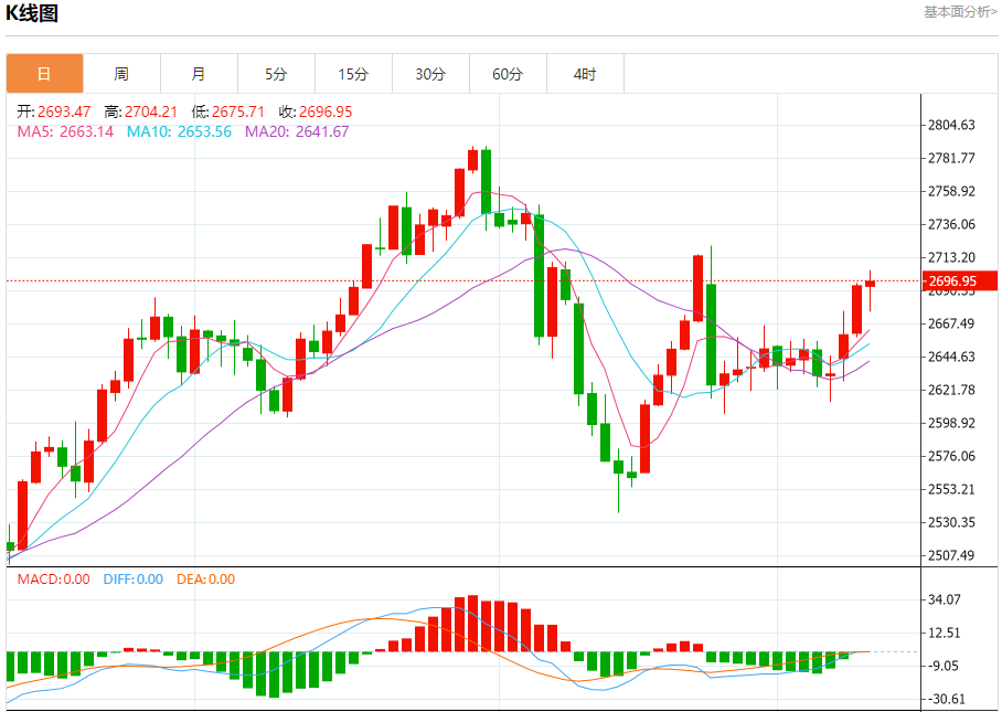12月11日,周三欧市初盘,金价在稳固反弹中接近两周高点2700美元上方。然而,金价能否进一步上涨取决于美国消费者物价指数(CI)数据的公布,这可能会为美国联邦储备委员会(美联储)明年初的政策定下基调。 在美国CI数据公布前夕,根据芝加哥商品交易所集团的美联储观察工具,市场预计美联储下周将降息25个基点(b)的
