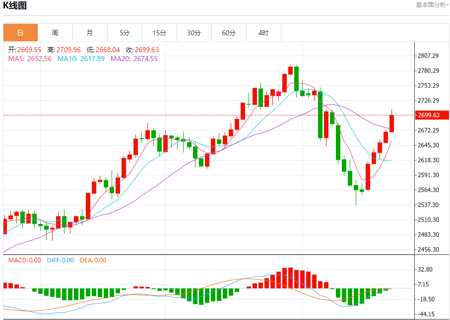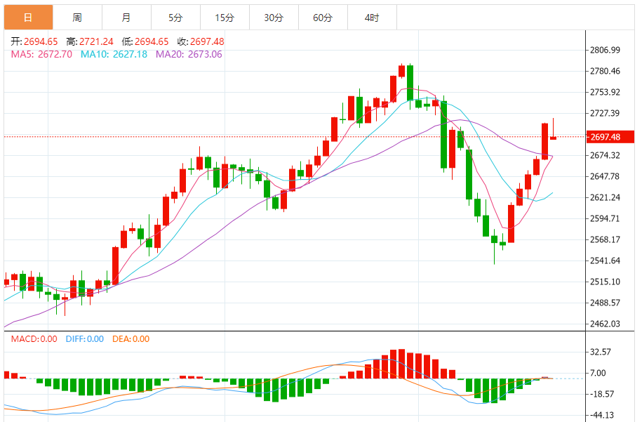 现货黄金价格成功突破了2670美元的关键阻力位,价格稳固站上2700美元,可能为测试2750美元甚至2790美元打开空间。本周黄金市场以每盎司2563美元开盘,随后在交易者的推动下迅速上涨至2594美元。金价在欧洲交易时段持续测试2600美元的阻力位,并在周一早上突破。随后,金价在一系列稳步攀升和急剧飙升中继续上涨,最终在