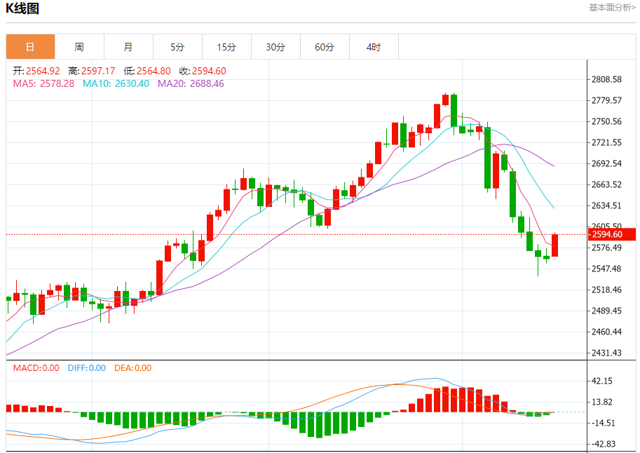 黄金市场走势回顾 本周黄金市场震荡下行,现货金价周五收于每盎司2,565.49美元,较周初累计下跌超过4%,创下三年来的最大单周跌幅。市场情绪受到美联储降息预期降温、美元走强以及美国经济数据超预期等多重因素的压制,交易者普遍对未来金价走势表现谨慎。截至周五晚间,现货黄金下跌0.1%,报2,565.49美元/盎司,美国期