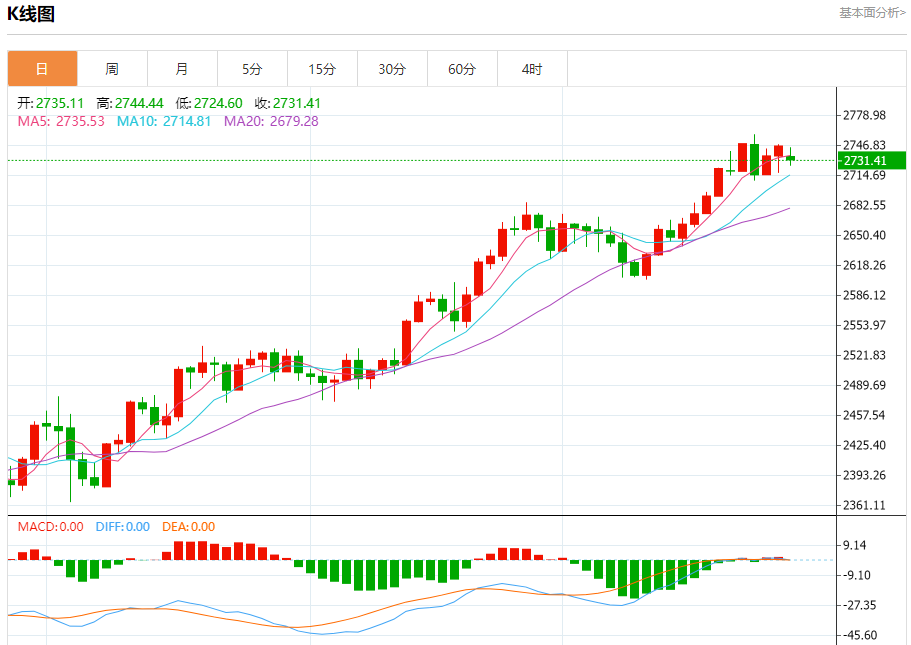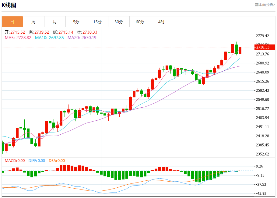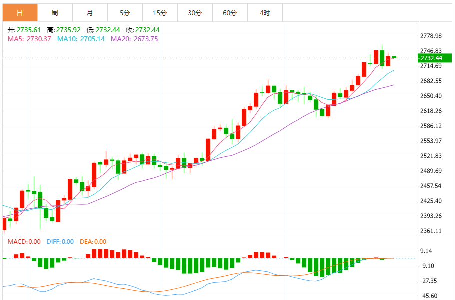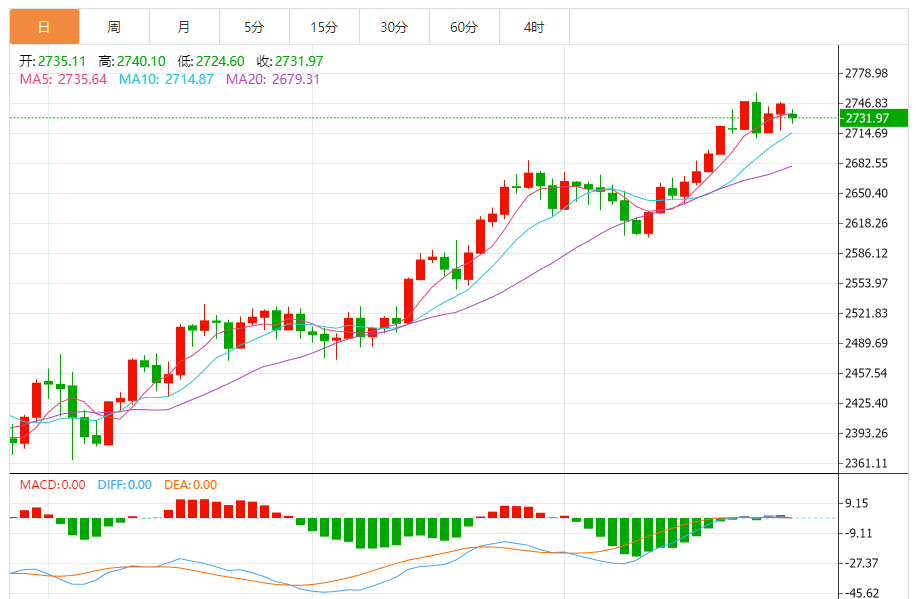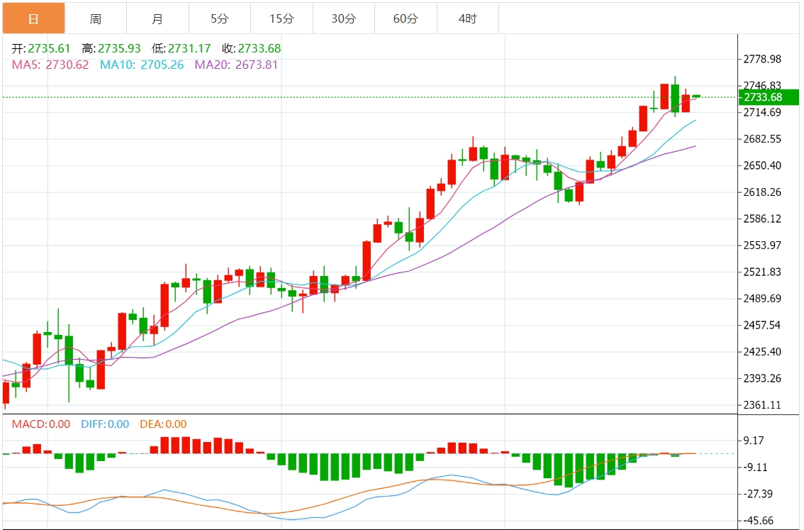周二(10月29日),现货黄金短线突然大幅上涨,金价刚刚触及2753.04美元/盎司,创下日内新高,也逼近此前的历史高位。黄金价格在历史高位附近整固,目前保持看涨倾向。 黄金市场基本面分析 上周三,现货黄金价格创下2758.45美元/盎司的纪录新高。 周一,现货黄金大幅跳空低开,亚市早盘,金价一度