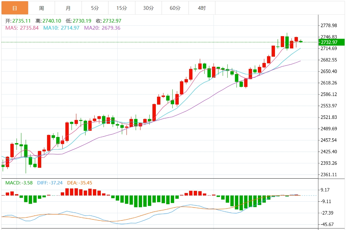 10月25日,周五亚市盘中,黄金交投于2732.29附近。 由于美国国债收益率因对避险资产的需求而下跌,黄金价格周四尾盘攀升。中东紧张局势加剧和美国大选困境支撑着黄金。 风险偏好有所改善,正如华尔街的绿色交易所描绘的那样。美国数据显示,劳动力市场仍然稳健,并不像美联储(Fd)预测的那样疲软,由于担心货币政策过