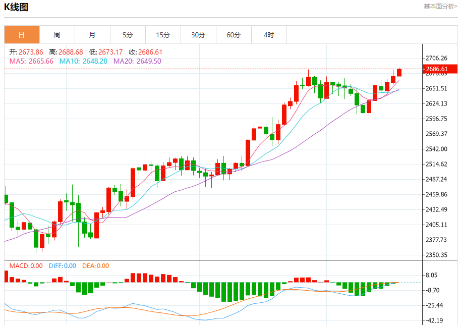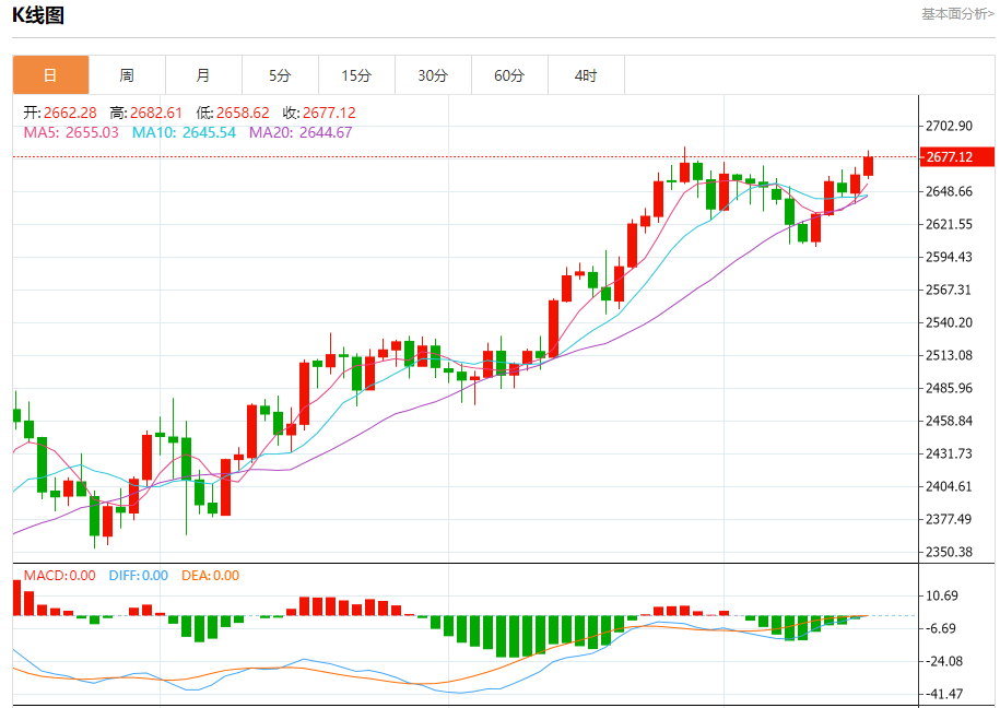 周四(10月17日),现货黄金在昨日大涨后维持坚挺走势,金价目前位于2682美元/盎司附近。尽管美元走强,但避险情绪继续推动黄金需求,周三金价一度逼近纪录高位。 黄金市场基本面分析 现货黄金周三收盘上涨10.99美元,涨幅0.41%,报2673.59美元/盎司。金价盘中一度飙升至2685.36美元/盎司,非常接近9月26