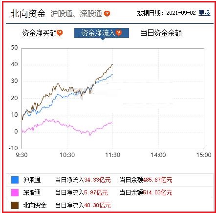 截至午间收盘: 北向资金净流入40.30亿元,其中沪股通资金净流入34.33亿元,深股通资金净流入5.97亿元。