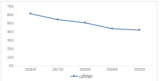 贝壳研究院数据显示,10月贝壳重点城市租赁市场成交量环比持续下降,租金水平同比四连降达到近五年最低值。从成交量来看,10月租赁成交量环比下降10.5%,延续9月的下降态势。从租金水平来看,2016-2020年的10月租金四连降,达到近五年最低。2020年10月重点城市平均月租金为41.8元/平米,环比下降0.6%,同比下降4.0%。