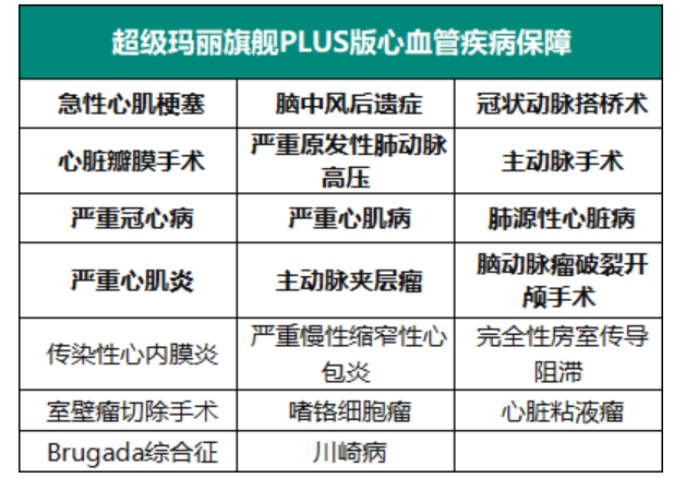 超级玛丽旗舰PLUS版=达尔文超越者+20种心血管特定病保障。