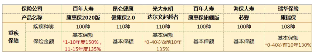 目前市场上的热销重疾险产品,保障病种一般都在100种左右,基本都能涵盖常见高发重疾,在此不赘述。