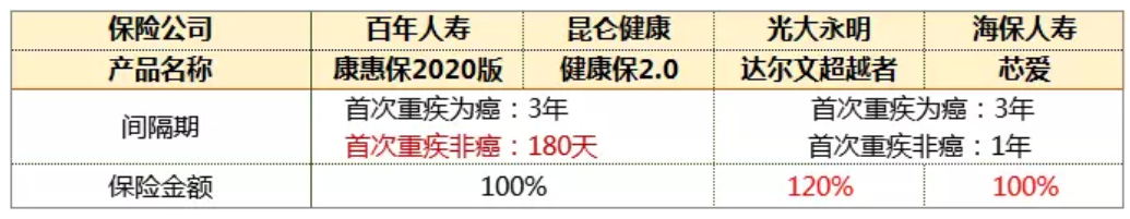 康惠保2020版、健康保2.0如果首次重疾理赔非恶性肿瘤,间隔期仅180天;达尔文超越者虽然在间隔期方面没有优势,但是二次癌症赔付比例较高,达到120%。总体而言,康惠保2020版、健康保2.0和达尔文超越者各有优势。