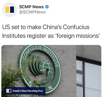 据不愿透露姓名的知情人士透露,美国国务院计划最早于周四宣布,美国的孔子学院(其中许多设在大学校园)将需要注册为“外国使团”。这一认定意味着孔子学院由外国政府“实质上拥有或有效控制”。这将使他们受到与大使馆和领事馆类似的行政要求。