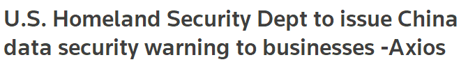 据Axio周二(12月22日)报道,美国国土安全部将向美国企业发出建议,警告它们使用与中国有关的公司的通信设备和服务可能带来的数据安全风险。 这份报告发布之际,正值特朗普政府对中国发起最后攻势之际,突显了特朗普政府对一些中国企业与中国政府之间的密切关系所构成的风险的重视。 据一名高级政府官员透露,这份1