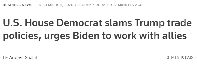 美国众议院筹款委员会负责人、民主党人理查德·尼尔(RichardNal)周五(12月11日)抨击特朗普总统对中国野心的“不成熟回应”,并呼吁美国对政策进行重大调整。 尼尔敦促拜登领导的政府制定一套计划和投资来制衡中国,包括重新激活与欧洲盟友的合作。 尼尔敦促新政府接受欧洲的提议,与欧洲敲定一项新的广泛贸易协议