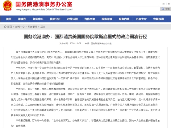 综合此前报道,美国财政部网站显示,美国周一(12月7日)对14名中国官员实施了制裁,这些新的制裁名单与中国取消香港选举的反对派议员的资格有关。据报道,此次制裁的官员都是中国全国人大常委会副委员长。 路透社当地时间12月6日援引知情人士称美国正准备对至少12名中国官员实施制裁。两名消息人士称,被制裁对象包括