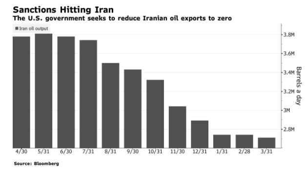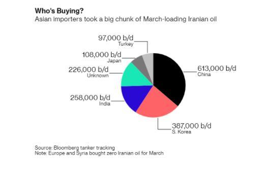 去年11月,美国再次对伊朗石油出口实施制裁,但对伊朗的八个主要买家给予豁免:中国、印度、日本、韩国、中国台湾、土耳其、意大利和希腊。他们被允许在六个月内继续进行有限的购买。