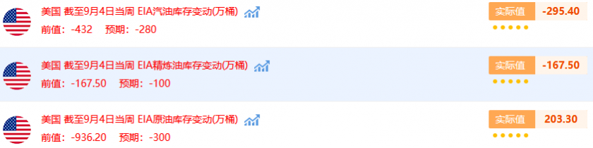 【美国至9月4日当周EIA原油库存+203.3万桶,预期-300万桶】
