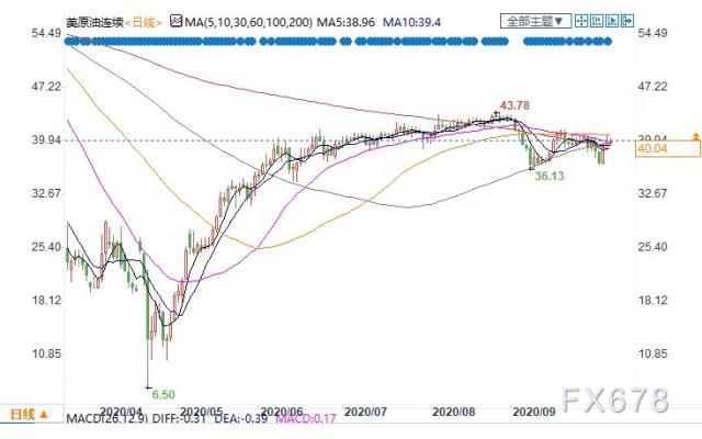 美国WTI 11月原油期货电子盘价格周三(10月7日)收盘下跌0.63美元,跌幅1.55%,报40.04美元/桶。美油周三下跌近2%,此前美国总统特朗普摧毁了实施新的经济刺激计划以提振受疫情打击的经济的希望,且最近一周美国原油库存上涨。